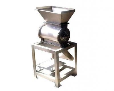 工作原理:飛刀繞自身軸線在固定不動的底刀間隙內(nèi)旋轉(zhuǎn),從而使果蔬破碎,轉(zhuǎn)子上有四組飛刀,底刀為一組,視果蔬種類不同,出料斗有斗式和管式兩種型式。在進(jìn)料斗上部加上緩沖裝置,可得到粒度更細(xì)的物料。