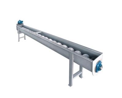 該機由筒體(筒體設計形式有“U”型敞口或加蓋、“O”型密封兩種)、螺旋輸送軸、端蓋、動力傳動裝置等部分組成。設備全部采用優質不銹鋼材料制作,結構簡單,運行平穩可靠,廣泛適用于各種干濕物料的水平或傾斜輸送。在輸送原料是蘋果、梨等水果時,輸送葉片四周焊接不銹鋼圓,以防原料在輸送過程中被葉片切碎。
